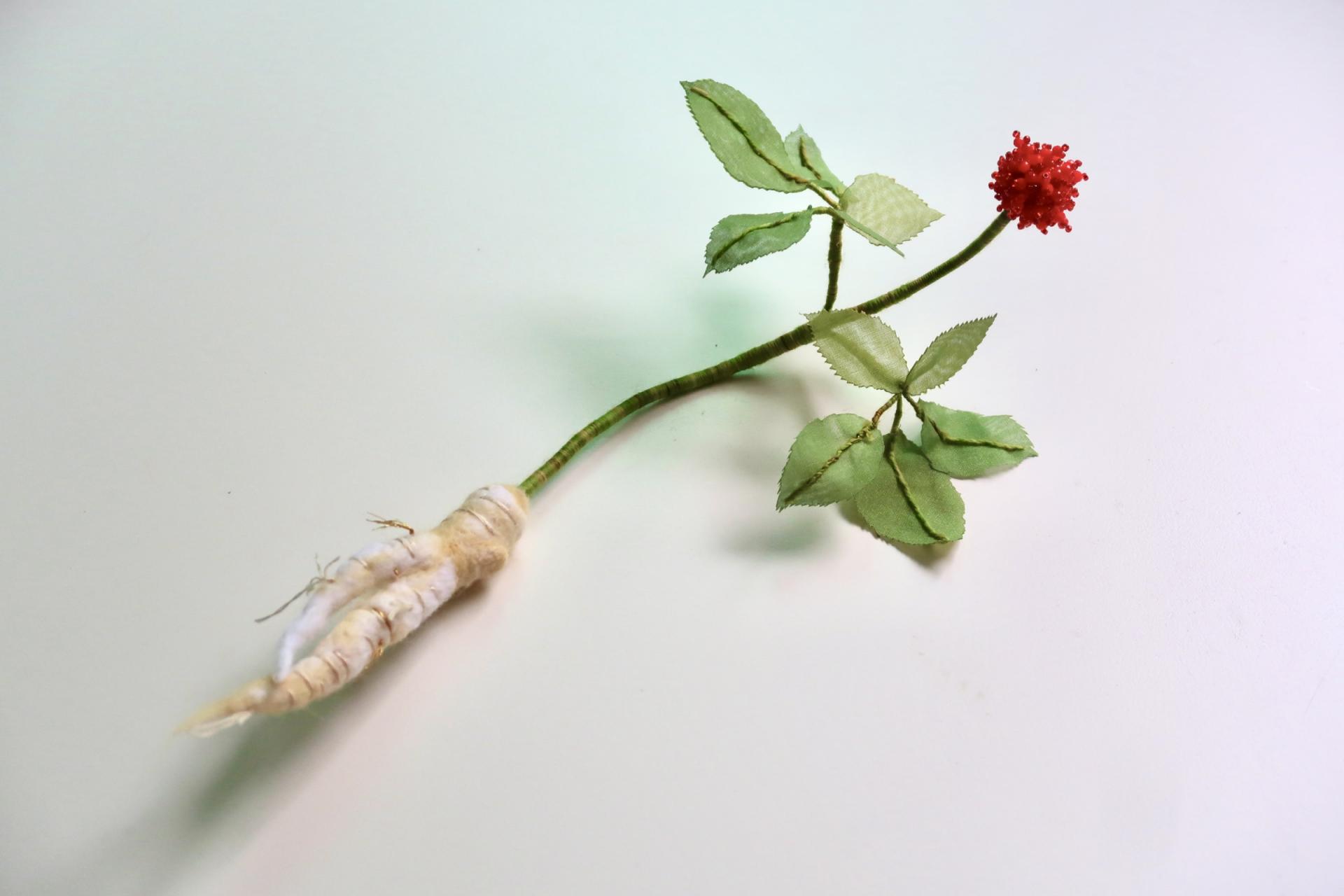 브랜드의 핵심 원료인 인삼을 모티프로, 다양한 소재와 미감을 결합해 새로운 이미지로 풀어낸 작품.